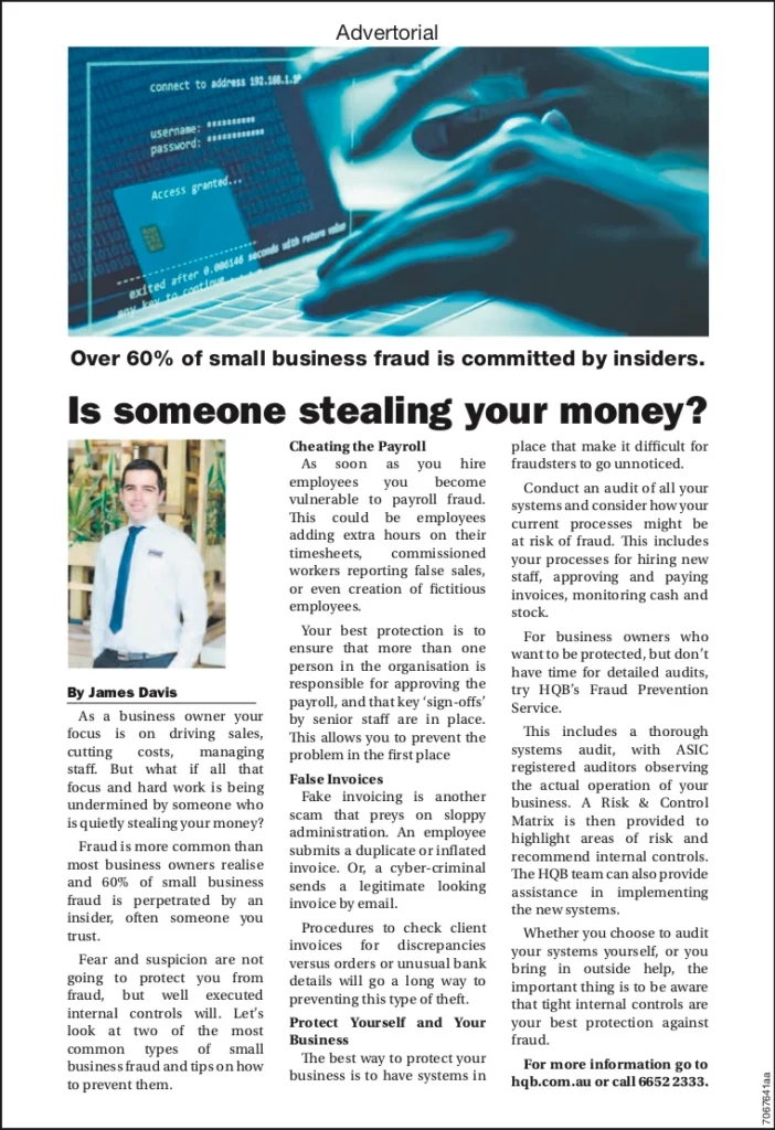Fraud is more common than most business owners realise and 60% of small business fraud is perpetrated by an insider, often someone you trust.